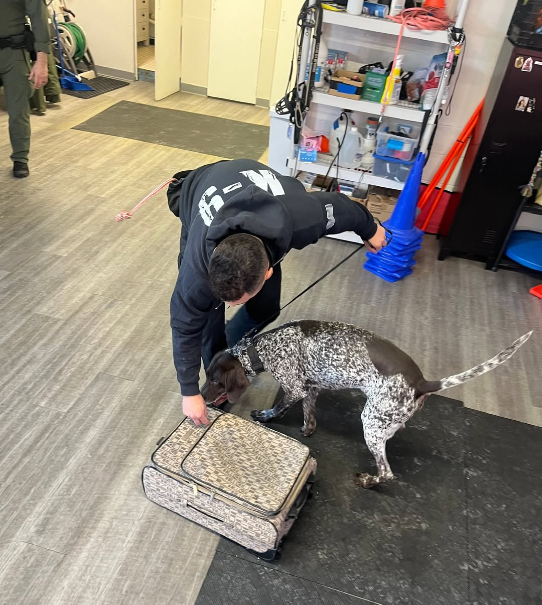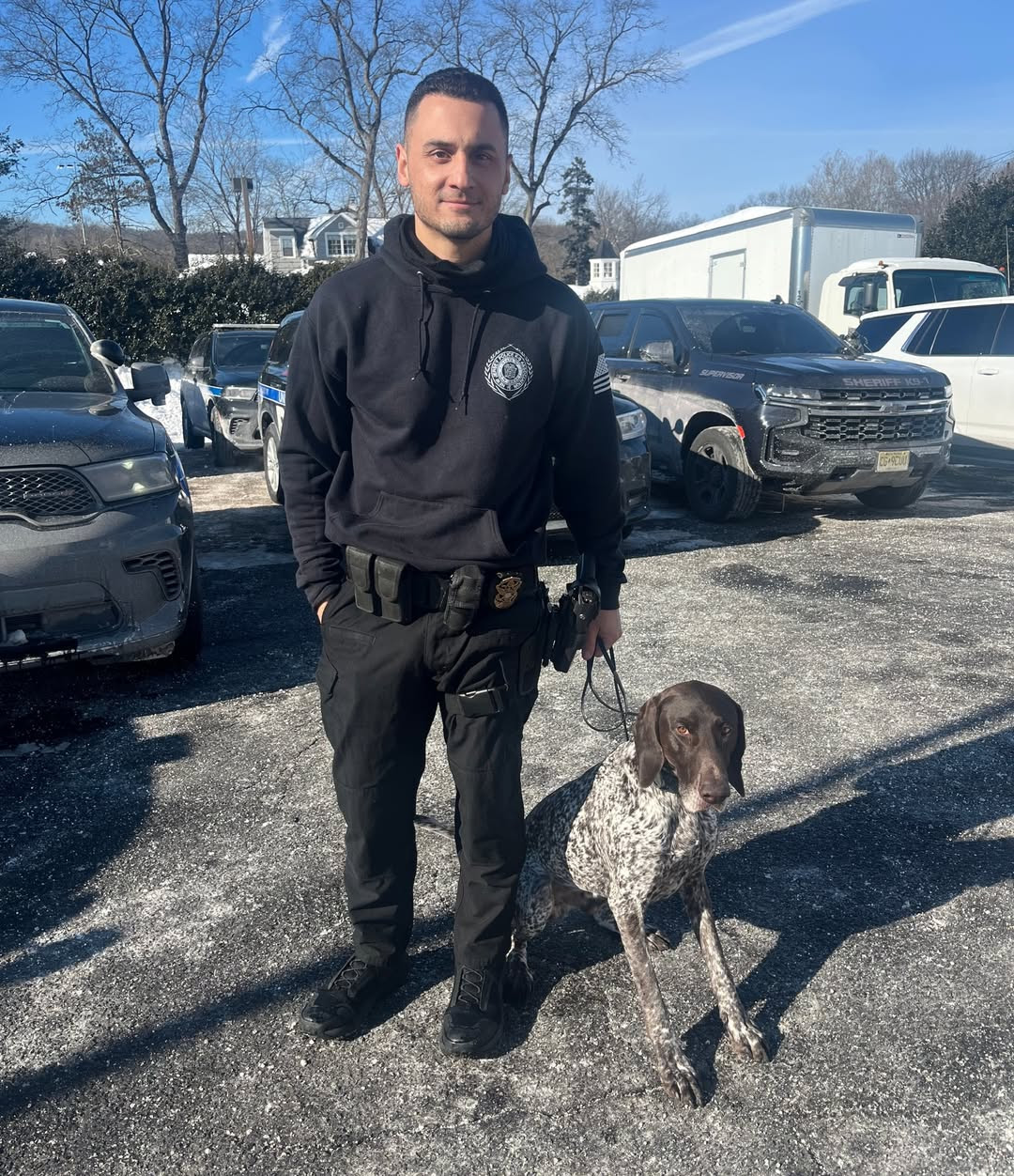 Meet Officer Jeter (yep, like the American League Baseball rookie of the year, five-time World Series champion, 14-time All-Star, and member of the Hall of Fame, “The Captain” Derek Jeter) and his partner Officer DelPrete. Jeter is a bad to the bone (in only good ways) three-year-old German Shorthaired Pointer who specializes in explosives detection.